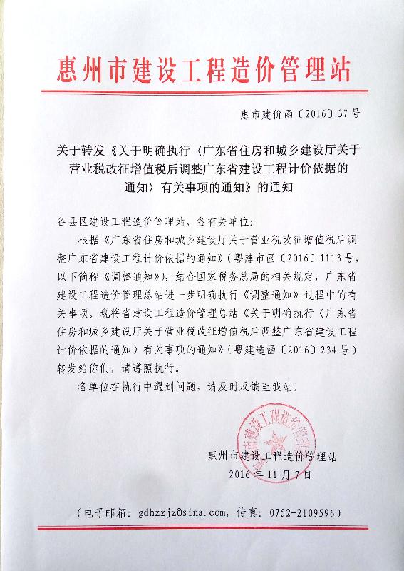 相關連接:關于明確執(zhí)行《關于營業(yè)稅改征增值稅后調整廣東省建設工程計價依據(jù)的通知》有關事項的通知