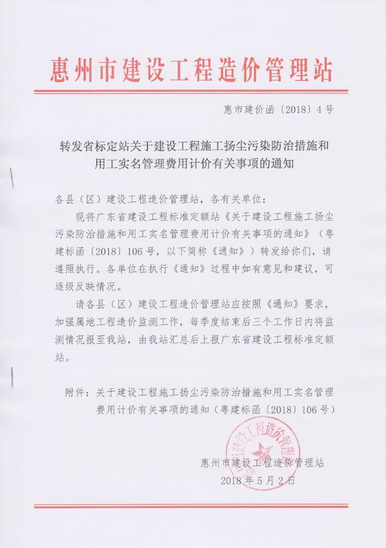 附件:關(guān)于建設(shè)工程施工揚(yáng)塵污染防治措施和用工實名管理費(fèi)用計價有關(guān)事項的通知(粵建標(biāo)函〔2018〕106號)